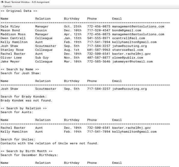 In AP Computer Science A, students learn how to implement sequential/binary search methods with Java by designing a program to search contact data stored within an array by specific details.